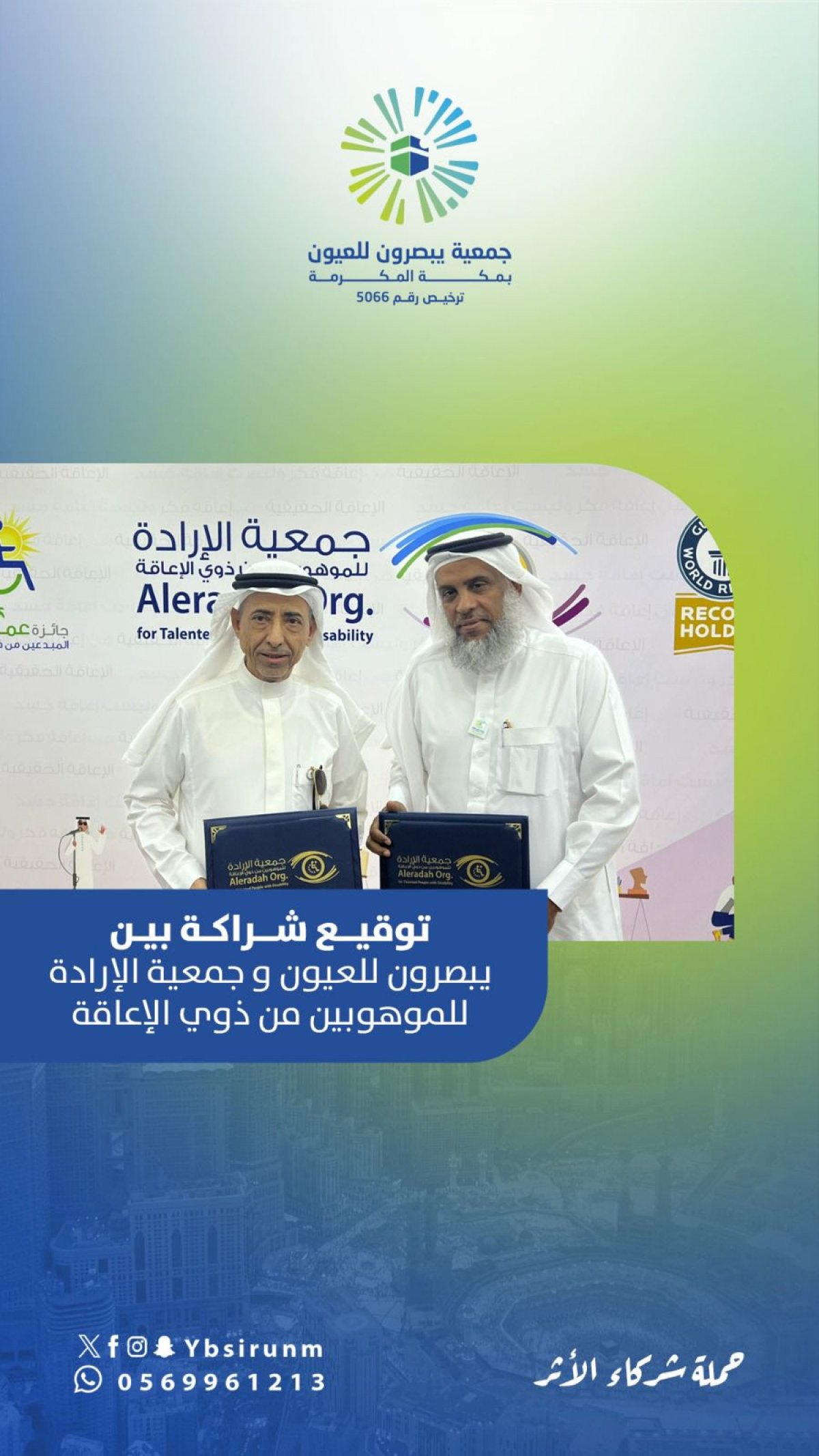 وقّعت جمعية يبصرون للعيون اتفاقية شراكة مع جمعية الإرادة للموهوبين من ذوي الإعاقة